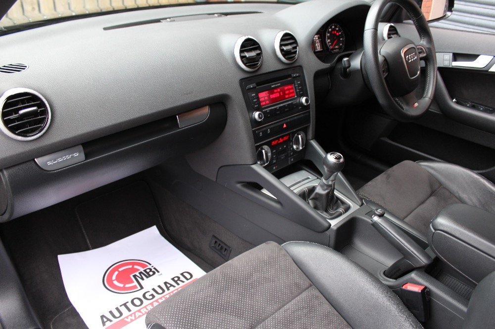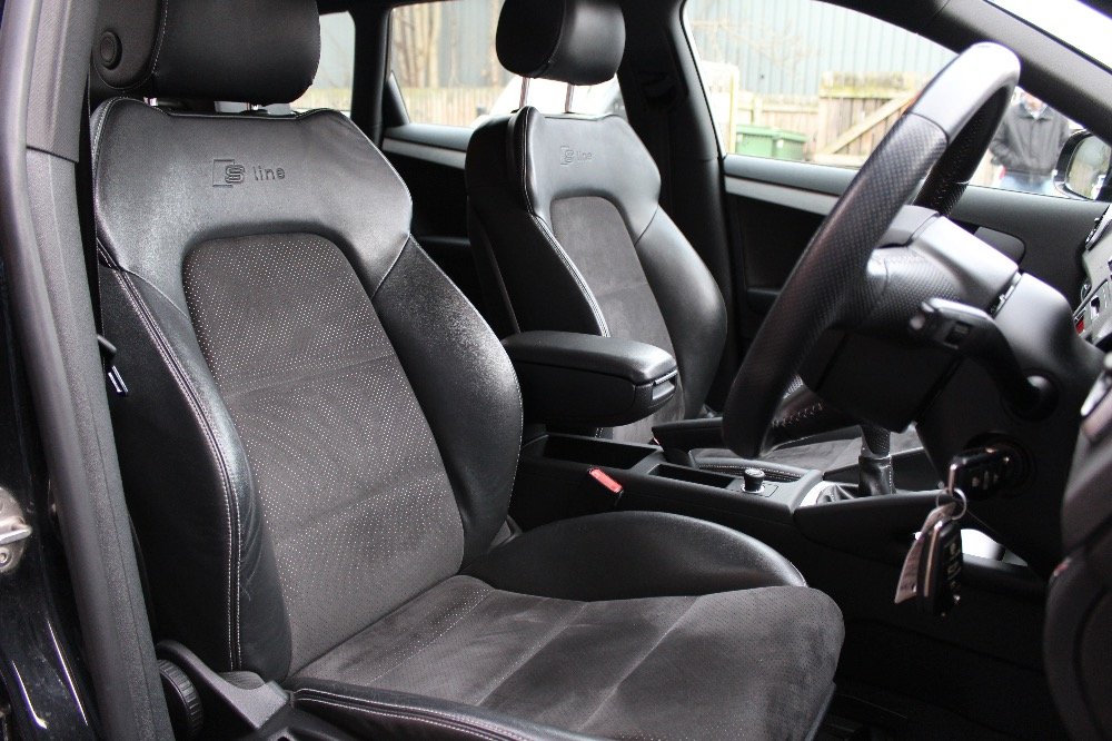 Just arrived into stock a super and extremely well cared for Audi A3 S Line Quattro finished in Phantom Black with special order suede and leather interior. The car is in superb condition inside and throughout and benefits from a full service history with the most recent service being done in November 2016 at 56,260 miles also the car has just had 2 brand new Audi Approved continental tyres fitted to the front of the car which match the rear 2 tyres which have a considerable amount of tread left. This A3 comes with; Xenon DRL headlights, special order suede and leather upholstery, cruise control, Audi Quattro 4 wheel drive, Audi concert, multi function steering wheel, auto dimming heated and folding mirrors, rear parking sensors, Audi upgraded 18inch alloys + much more. All our cars come with a full HPI certificate. We can provide superb finance packages at very competitive rates. If you do have any questions then please don't hesitate to call 01132536560 or email.