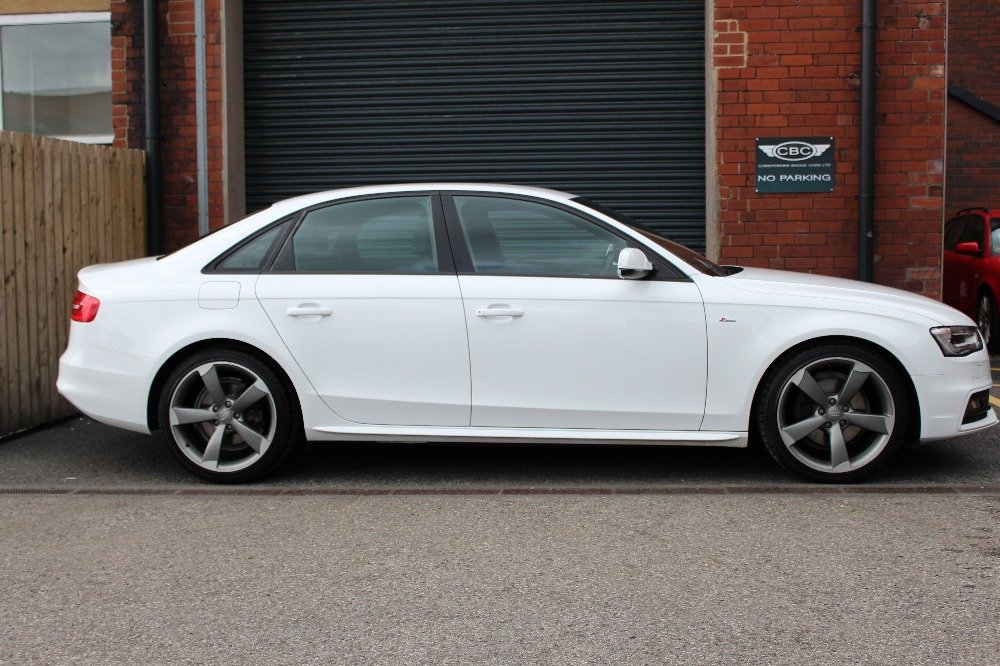 Just arrived a beautiful 2 owner Audi A4 black edition which was previously sold by ourselves to a regular customer 18 months ago. The car is finished in the most desirable glacier white with black half leather and is in lovely condition inside and throughtout and benefits from a full Audi main dealer service history. Being the black edition the car comes with bang and olufsen sound, dab radio, black styling pack interior and exterior, cruise control, automatic lights and wipers, automatic xenons, half leather, sd card media input, black edition rotar alloys, privacy glass + much more. All of our cars come with a full HPI certificate. We can offer superb finance packages at extremely competitive rates tailored for invididual needs. Please call or email to discuss our various warranty options with this car. If you have any questions regarding the car please do not hesitate to email or call the office.