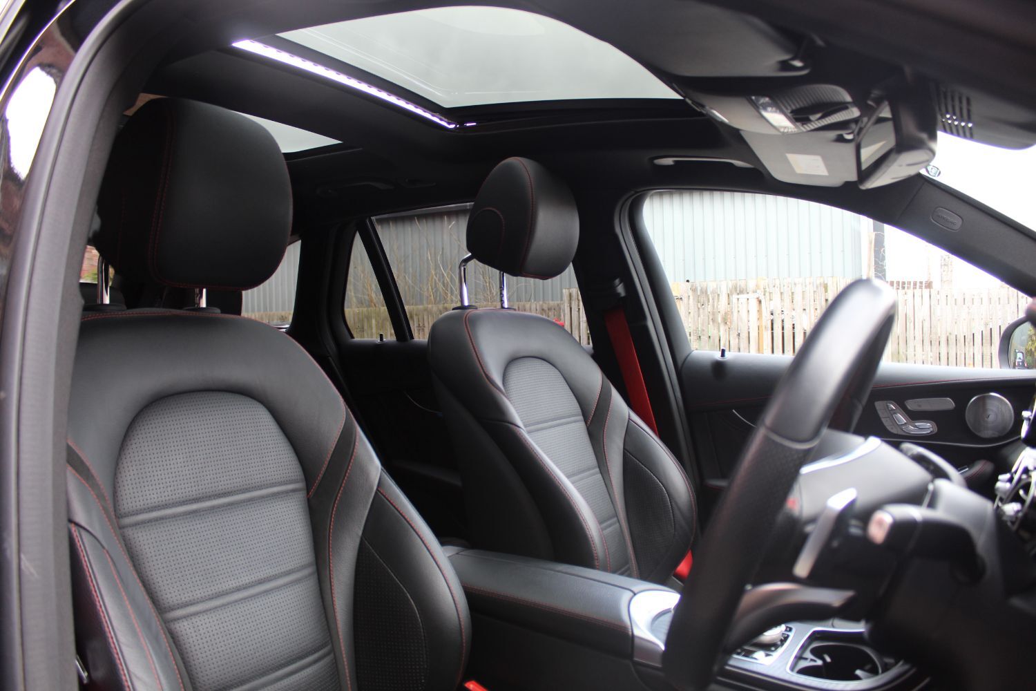 Just arrived into stock a fantastic & rare spec Mercedes Benz GLC43 finished in Obsidian Black Metallic with Artico/DINAMICA black with red contrast stitching. The car is in fantastic condition inside & throughout & benefits from a full service history (Mercedes Benz specialist & main dealer) , both keys & full bookpack. This particular GLC comes with a extremely desirable specification which consists of; Lane Tracking Package, AIR BODY CONTROL air suspension for front and rear axles with continuously adjustable damping, 21"AMG alloy wheels (4) ? 5-twin-spoke design, bicolour, Headlamps ? LED Intelligent Light System with Adaptive Highbeam Assist Plus, Running boards with rubber studs, AIR-BALANCE package: Interior fragrance dispenser. Oxygen ionization, improved passenger compartment air filtering. Renewable perfume flask in glove compartment, 360° camera - Four networked cameras in front grille, wing mirrors and boot capture a 360° bird?s-eye view of vehicle?s immediate surroundings, Burmeister sound system, electric memory front seats, Command navigation + much more. All our cars here at Christopher Brook Cars come with a full & clear HPI certificate. Nationwide delivery & personal videos can be arranged. Extremely competitive finance packages with or without a deposit can also be arranged. If you do have any questions regards the; car, spec, finance etc then please do not hesitate to contact the office on; 01132536560 / 07889167837 or email sales@christopherbrook.co.uk